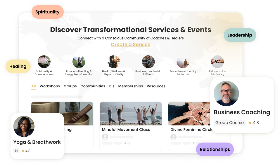 Share your services, connect with a global community of conscious clients, and create new opportunities for your coaching or healing business.